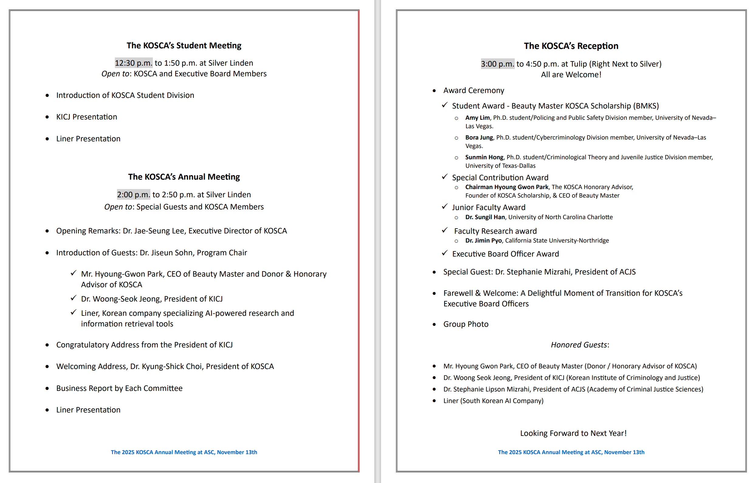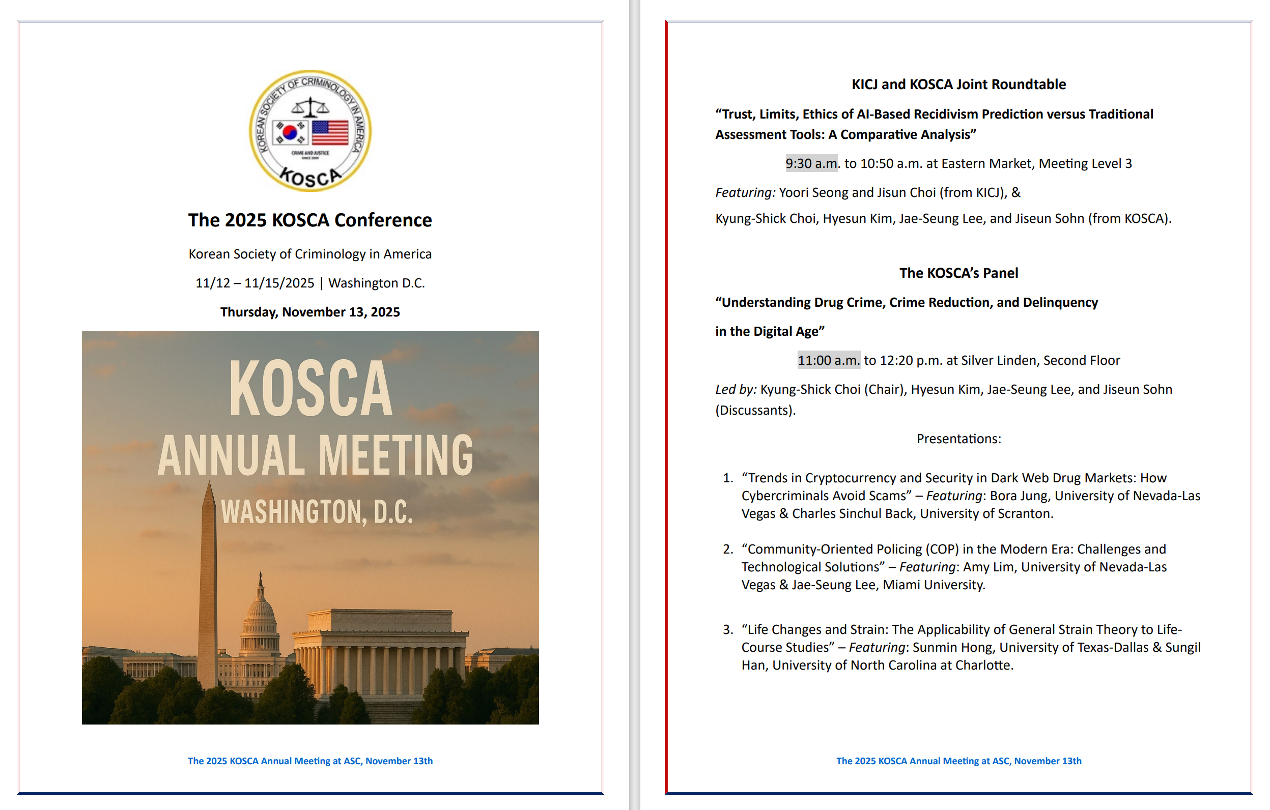 • The 2025 KOSCA Annual Meeting in Washington D.C.